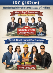 2. The Tier 2 Revolution: The Next Five (Effective 2027). Under ARPA and the January 2025 Proposed Amendments to Treas. Reg. § 1.162-33, 90 Fed. Reg. 4691 (Jan. 16, 2025), the definition of a “covered employee” will expand again starting in 2027. This creates a two-tiered system for tracking high earners. Thus: (i) Tier 1 includes your CEO, CFO, and top three officers who stay “covered” forever under the “once a covered employee, always a covered employee” rule; (ii) Tier 2 adds the next five highest-paid employees who don’t have to be officers; and (iii) unlike Tier 1, these Tier 2 employees only stay on the list for years they actually rank in the top five.